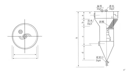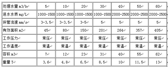該斜板沉淀器沉淀污水固體、懸浮物、污水經(jīng)加混凝反應(yīng)后由設(shè)備上端進水口進入設(shè)備,經(jīng)錐形反應(yīng)池混凝形成礬花,逐漸沉降至設(shè)備污泥斗中(設(shè)備可連續(xù)、間斷排泥)形成排泥,在反應(yīng)池中污泥沉降,清水上升至斜板(管)中,并進一步沉降污水中的顆粒,清水上升至溢流槽后出水。